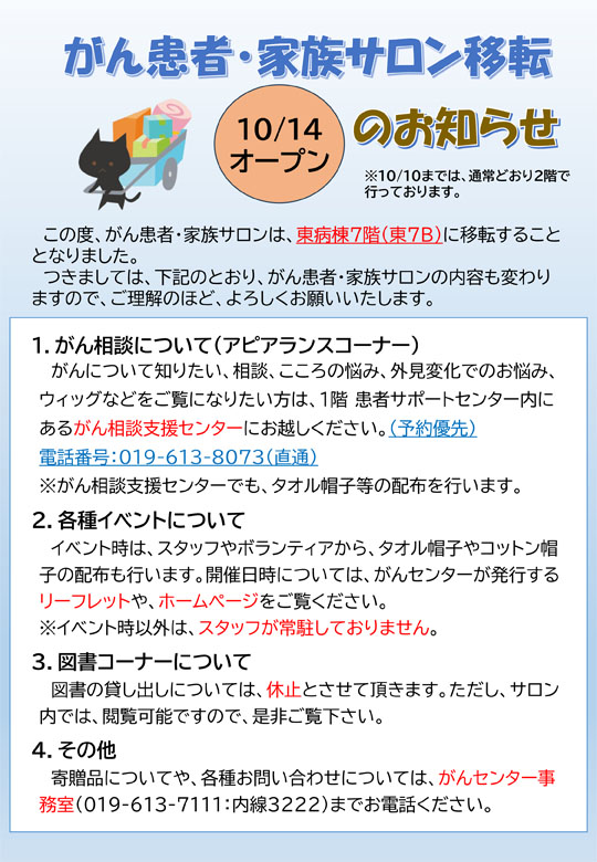 化学療法センターおよびがん患者・家族サロンの移転のお知らせ